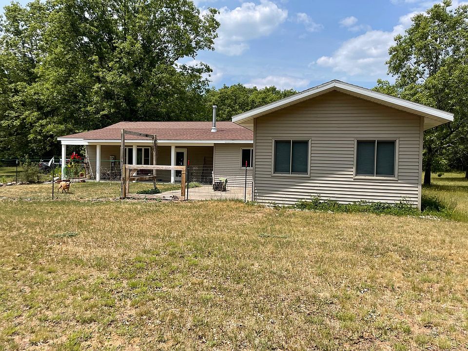 Country Living for this Ranch Style 2 Bedroom 2 1/2 Bath home on 40+/- nicely wooded acres. Home features an open floor plan with a woodstove in the living room, central air, lots of cupboards and island in the kitchen. Primary Bedroom has attached bath with soaking tub and shower with attached walk in closet. Large area between bedrooms could be used as office space or extra sleeping area. 24x40 insulated and heated workshop with 200 amp service in addition to a 3 car 30x40 garage. Additional third barn for any extra storage you would need Covered porch, fenced yard and two dual RV hook-ups for extra guests! Trail system throughout this beautiful parcel. Secluded location back off a county maintained paved road. Close to the Little Manistee River, North County Hiking Trail. ORV trai