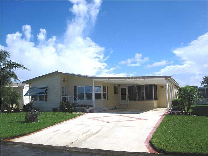 Meticiously maintained Palm Harbor home offers two bedrooms, two bathrooms, light and bright eat in kitchen, dining room, computer room and enclosed lanai. From the moment you enter through the front door you will feel right at home. The seller has done many updates including new thermo double pane E glass windows, 3T 12 seer AC plus larger duct work, durastone flooring, newer roof with life time warranty and large workshop with washer/dryer and golf cart parking. There is an option for washer dryer hookup in the computer room or in the shed. Double Carport. The enclosed lanai has acrylic sliders and new roller shades. Nice size guest bedroom with walk in closet and entrance into the second bath that has skylight and upgraded heavy chrome shower sliding doors. The master retreat is a nice size and has vaulted ceilings. The expansive master bathroom has a garden tub, dual sink and separate shower. The A/C was replaced in 2004, hot water heater is 2 years old, roof is newer and has a transferrable warranty. There is nothing left to do here but move right in and start enjoying the Florida Lifestyle in this 55+ community. Nearby to residents golf cart trail to championship golf clubhouse. Wonderful gated community offers 2 tennis courts,2 pools,clubhouse,six shuffleboard courts,horseshoe courts & a boccie ball court.Lots of social activities to choose from.This is Florida living at it's finest!