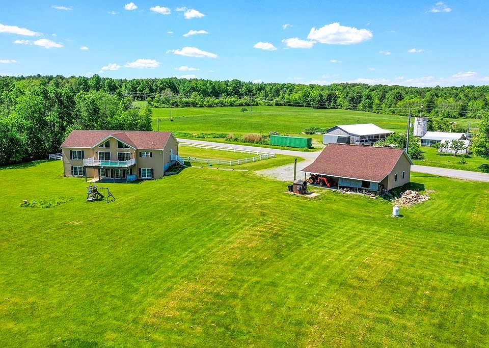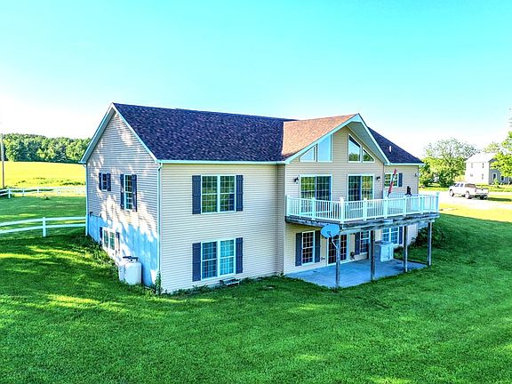 Welcome to Tranquility in the Finger Lakes! This gorgeous NEW home was recently built in 2010 and has so many amazing features. The main level boosts an open floor plan w/ a large kitchen, Merillat cabinets, island, & pantry. Laundry room w/ storage & a second pantry. The living area offers natural sunlight & vaulted ceilings. Step out onto the deck & admire the sunrise & country views. Two bedrooms & 2 full bathrooms on the main level. Below is 3 more bedrooms & 2 full bathrooms. Below is also a second living room and a walk out to a covered patio. NEW furnace. The second story has 2 more rooms that could easily be finished. 1,200 sq. ft. garage, fenced in front yard, stocked pond, wild life, trails, and only 2.3 miles to Keuka Lake! Additional 38.20 acres available!