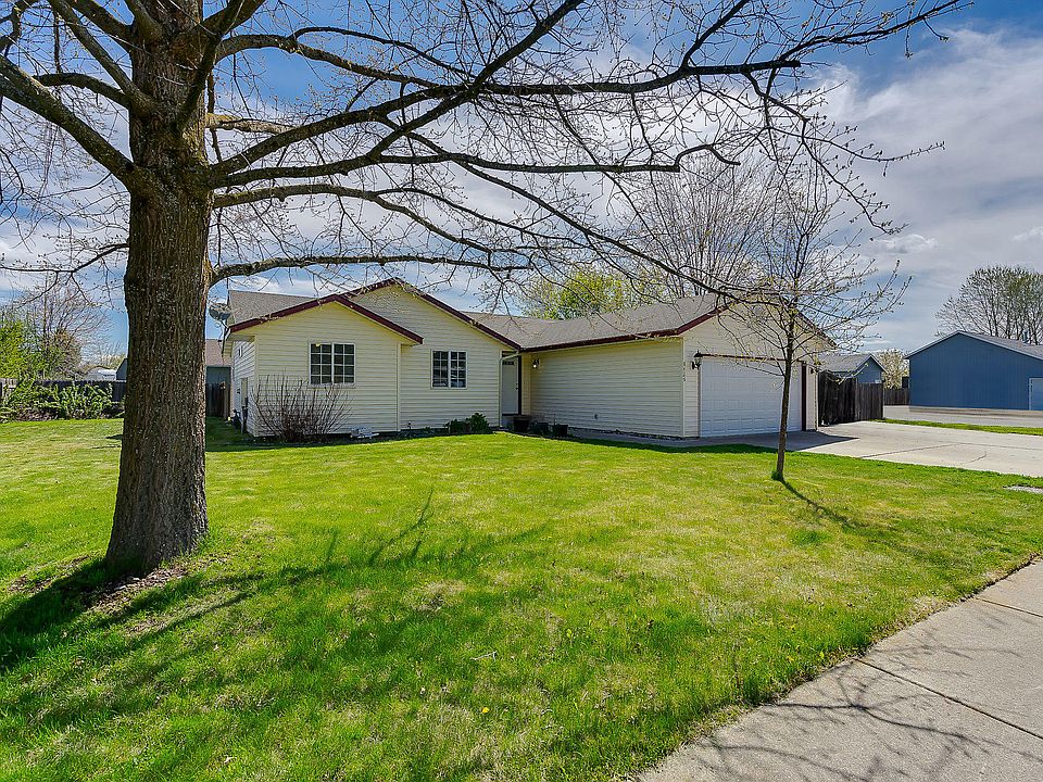One level Rancher with RV PARKING! Clean and cute! Gas Forced air plus ready to go to add a wood burning or pellet stove! New flooring throughout, updated bathrooms, spacious Master suite with walk in closet, large fenced yard on corner lot! Vaulted ceilings too! Clean clean!
