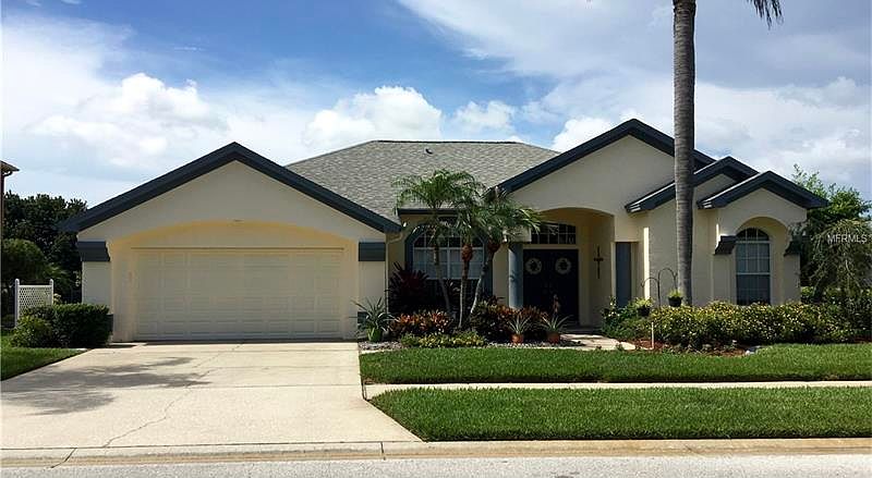 This Trinity Oaks 3 bed 2 bath split plan home features oversized lot (.30 MOL. acres) on a cul-de-sac. The meticulously maintained home has brand new countertops, freshly re-glazed bathrooms, new carpet and new screening out on the patio! The exterior was just pressure washed and the roof cleaned. The newer roof was replaced within 5 years and the AC within 8 years. The back yard features a concrete pad with a basketball hoop. The home was also pre-wired for a pool and has plenty of room for one! The Trinity area boasts convenience to shopping and restaurants. The home is located close to the Veterans for easy access to Tampa and surrounding areas. Call to make your appointment to see this home today!