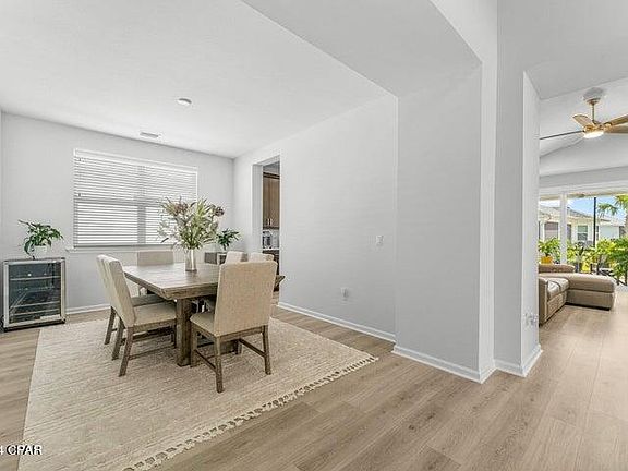 Step into the foyer with soaring ceiling flanked by thoughtfully designed den and inviting dining room with easy access to kitchen. Look around and you will see the distinctive features of a home filled with LUXURY UPGRADES that make daily living a breeze such as REMOTE-CONTROLLED BLINDS AND SHADES on windows and sliders; whole house WOOD VENTILATED SHELVING; REVERSE OSMOSIS WATER SYSTEM; dual tank soft water loop and drain; INSTALLED AIR PURIFIER and 8' interior doors. Kitchen boasts a copious amount of upgraded soft-close 42'' cabinets with pull out shelves, crown molding and double trash pull out; gorgeous, elegant QUARTZ countertops and backsplash; HIGH END STAINLESS STEEL APPLIANCES with 5 burner GAS RANGE; Samsung refrigerator with dual ice makers, double French doors and water dispenser. The spacious master bedroom suite has coffered ceiling, separate walk-in closets, ZERO ENTRY SHOWER with deluxe seamless enclosure and level 4 tile to ceiling with pebble floor. And when it is time to entertain, the open living spaces and EXTENTED SCREENED LANAI create the perfect backdrop for unforgettable gatherings. Additional features include laminate flooring, level 4 tile in bathrooms and laundry room, optional gas hook-up in laundry room and fans throughout. Hop on your four-seater golf cart (available for purchase) and cruise over the wooden bridges past the stunning Parrot Carving to the acclaimed amenity center where you can enjoy dinner at the Bar and Chill; take a swim in the resort-style Paradise Pool or the indoor lap pool; catch a spectacular sunset over the Intracoastal Waterway; meet up with friends for live music at the bandshell or work out at the state-of-the-art fitness center or pickleball courts. This isn't just a house, it's your gateway to UNPARALLED ACTIVE LIFESTYLE in this highly acclaimed 55+ community in the Florida Panhandle. Call to schedule your private showing today! Step into the foyer with soaring ceiling flanked by thoughtfully designed den and inviting dining room with easy access to kitchen. Look around and you will see the distinctive features of a home filled with LUXURY UPGRADES that make daily living a breeze such as REMOTE-CONTROLLED BLINDS AND SHADES on windows and sliders; whole house WOOD VENTILATED SHELVING; REVERSE OSMOSIS WATER SYSTEM; dual tank soft water loop and drain; INSTALLED AIR PURIFIER and 8' interior doors. Kitchen boasts a copious amount of upgraded soft-close 42" cabinets with pull out shelves, crown molding and double trash pull out; gorgeous, elegant QUARTZ countertops and backsplash; HIGH END STAINLESS STEEL APPLIANCES with 5 burner GAS RANGE; Samsung refrigerator with dual ice makers, double French doors and water dispenser. The spacious master bedroom suite has coffered ceiling, separate walk-in closets, ZERO ENTRY SHOWER with deluxe seamless enclosure and level 4 tile to ceiling with pebble floor. And when it is time to entertain, the open living spaces and EXTENTED SCREENED LANAI create the perfect backdrop for unforgettable gatherings. Additional features include laminate flooring, level 4 tile in bathrooms and laundry room, optional gas hook-up in laundry room and fans throughout. Hop on your four seater golf cart (available for purchase) and cruise over the wooden bridges past the stunning Parrot Carving to the acclaimed amenity center where you can enjoy dinner at the Bar and Chill; take a swim in the resort-style Paradise Pool or the indoor lap pool; catch a spectacular sunset over the Intracoastal Waterway; meet up with friends for live music at the bandshell or work out at the state of the art fitness center or pickleball courts. This isn't just a house, it's your gateway to UNPARALLED ACTIVE LIFESTYLE in this highly acclaimed 55+ community in the Florida Panhandle. Schedule your private showing today!