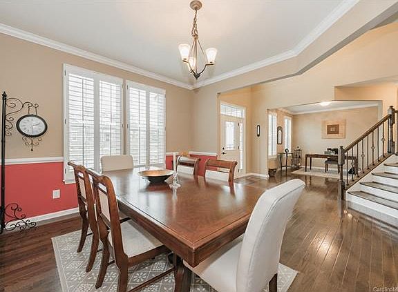 Welcome home to Abbington of Harrisburg, NC... a highly sought after community on the NE side of Charlotte, close to UNCC, Concord Mills, and Uptown! This neighborhood offers pool and tennis, plus winding roads, and lots of green space! Here you will find 8427 Penton Place. Just 4 years old, this spacious 6 bedroom home possesses gleaming hardwood floors, a fabulous gourmet kitchen, an unfinished basement (a rare find in this awesome neighborhood), and an outdoor oasis which includes stone patio, fireplace, and TV! Call our team today to see this home in person! 704-750-5417. Pulling up to this beautiful home you will immediately notice the lot - this home sits on a 0.53 cul-de-sac that backs to a natural area. Large shade trees line the back of the property! The exterior of the home is vinyl siding and there are stacked stone accents. Stepping inside, the dramatic open foyer and gleaming wood floors instantly capture your attention! The home office is on the left and the home's dining room on the right. Large windows with plantation shutters allow for tons of natural light in all of the rooms, plus hardwood flooring flows throughout the main floor. A-MA-ZING is what you will think when you step into the home's gourmet kitchen. It is HUGE and opens up to a sunny morning room and cozy great room. The kitchen's desirable features include stainless steel appliances (including double oven), LARGE island with plenty of room for stool seating, recessed lighting, granite counters, and a custom tile backsplash. The connected morning room offers additional eating/gathering space and has an entire wall of windows which overlook the home's rear deck, patio, and fenced in backyard. The adjacent great room has plush carpeting, a fireplace VENT (add a fireplace if you wish) with stacked stone and built-ins, a ceiling fan/light, and MORE windows! A full bathroom with tiled shower/tub and guest room with carpeting can also be found on the main floor. Heading upstairs, venture into the spacious master suite complete with plush neutral carpeting, tray ceiling with crown moulding, and DUAL walk-in closets. The connected master bath has gorgeous ceramic tile flooring, TWO vanities, a soaking tub, and an oversized stand-up shower with tile surround! There are four additional bedrooms in this home (one could easily be a bonus room!), all of which have plush neutral carpeting and ample closet space. This home's third full bathroom is shared by the bedrooms and has a nicely sized dual sink vanity with a shower/tub and ceramic tile flooring. Over 1600 square feet of additional space can be found in the (unfinished) basement which is perfect for storage, a workout room, or finish it off and have more living area! The backyard of this home was built for gatherings! There is a large wooden deck, stone patio with pergola, and stacked stone fireplace with TV, and kitchen (with grill and frig) - all of which overlooks a natural area. GORGEOUS! This wonderful home offers a ton of living space, upgraded features, and can be found in a great community... do not let it slip away! Contact our team today for a private showing. 704-750-5417