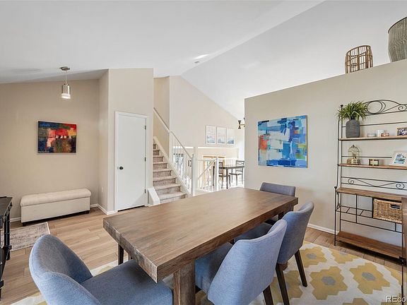 This delightful tri-level home offers a serene retreat on a charming cul-de-sac street in the Landing at Stanley Lake. The kitchen and dining room feature a vaulted ceiling and great natural light creating an inviting space for meals and gatherings while the living room offers a fireplace ideal for cozying up in the winter. The backyard boasts a Trex deck perfect for outdoor entertaining and a convenient shed. The versatile basement flex space is a standout feature—ideal for an office, guest room, playroom, or whatever suits your needs! The neighborhood walking paths provide the perfect opportunity to unwind and explore, or walk to Michael Northey Park, the scenic Standley Lake trails, or visit the shops and restaurants in Five Parks. With updates throughout, including quartz countertops, an instant hot water dispenser, COREtec LVP flooring on the main and upper levels, and smart home features including video doorbell, Nest thermostat, Rachio smart sprinkler system, and smart garage door, this home is ready for you!