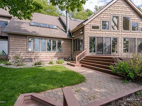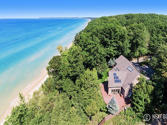 Hard to find 236' of sandy Lake Michigan frontage is private and features a gated entry. Completely updated home features over 4000 sq. feet with 4 bedrooms, and 2 ½ baths above ground with an additional bedroom, office and full bath in the lower level--bring all your family and friends to enjoy this beautiful home and property! This home features new paint and flooring, and higher end finishes throughout and has water views from almost every room. The spacious master suite has sliders to a k and an attached updated bathroom with tiled walk in shower. The remodeled kitchen features solid surface counters and is open to the dining and great room which has vaulted ceilings and expansive windows for priceless views of Lake Michigan.