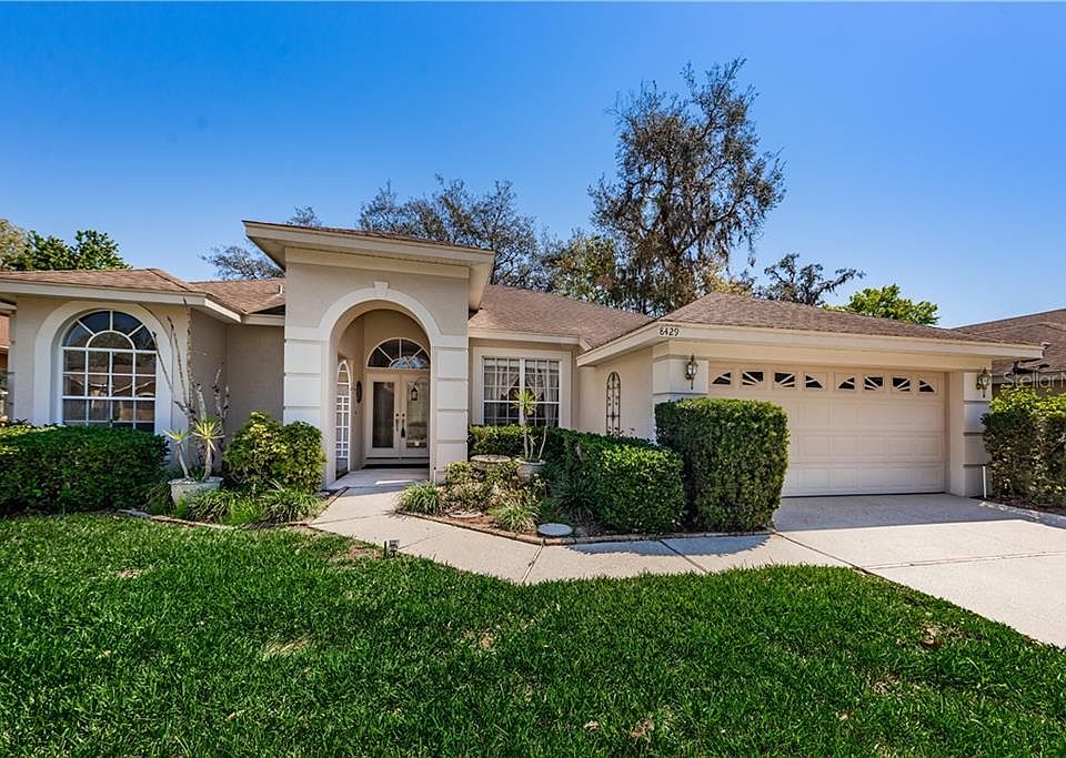 LIGHT BRIGHT, ONE STORY TRINITY POOL HOME with an OPEN AIRY SPLIT FLOOR PLAN SITUATED ON A PRIVATE CONSERVATION LOT located in the highly sought after J W MITCHELL HIGH SCHOOL DISTRICT. This home features 3 spacious bedrooms, 2 baths, 2 car garage with 1887 square feet filled w/ lots of natural light located on a CUL DE SAC street. The manicured curb appeal invites you up to the DOUBLE leaded front door. Inside you will find a CERAMIC TILE FOYER, the formal living & dining rooms highlighted with CROWN MOLDING, LAMINATE FLOORS, SOARING CEILINGS & VIEWS of the PRIVATE COVERED OUTDOOR LANAI, SPARKLING POOL and CONVERSATION. The light, bright kitchen includes CLOSET PANTRY, NEWER REFRIGERATOR, BREAKFAST BAR, KITCHEN NOOK which opens up to the SPACIOUS FAMILY ROOM along w/ sliders to the outdoor covered lanai & pool area for easy entertaining. The LARGE MASTER SUITE has a WALK IN CLOSET and a MASTER BATH featuring a vanity with dual sinks, GARDEN TUB and LARGE WALK IN SHOWER. Additional highlights of this home include INSIDE LAUNDRY ROOM including the washer and dryer, CROWN MOLDING, HVAC (2015), POOL (2002), HOT WATER HEATER (2013), GUTTERS, WATER SOFTENER, CEILING FANS, NEW POOL CLEANER (2020), SPANISH LACE CELING FINISH, IRRIGATION SYSTEM & MORE! A RATED SCHOOLS, close to medical facilities, YMCA, restaurants, shopping, parks, golf courses, Starkey/Suncoast Trail and more. NO FLOOD INSURANCE NEEDED, LOW HOA DUES, NO CDD FEE! MUST SEE!