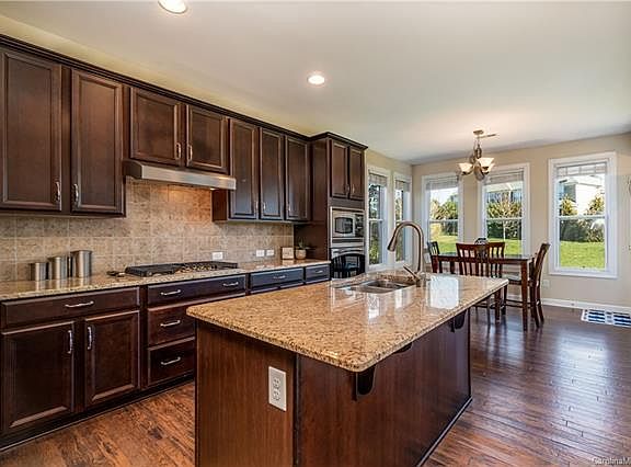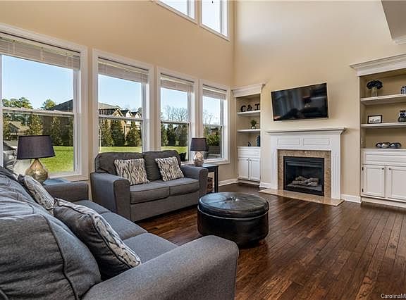 Absolutely stunning 4 bed, 3 bath home in the Marvin School District of Waxhaw. Inside you will find a spacious floor-plan with cathedral ceilings, creamy crown molding, trim, wainscoting and custom built in bookshelves, plus gorgeous hardwood flooring throughout. Enjoy entertaining in the large eat in kitchen where there is seating for all of your guests, including the breakfast nook, formal dining room and breakfast bar at the center island. You will never run out of cabinet or counter space! After dinner, move into the main living area with the amazing floor to ceiling views of the lush backyard and cozy up to the eye catching fireplace. Other features include a bright den/office, upstairs bonus room and a laundry room with a built in mud area. This outstanding property is located just around the corner from the neighborhood pool, playground, basketball and tennis courts, and walking trails. Welcome home!