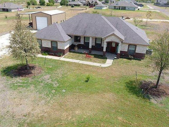 Convenient country living in a great neighborhood and location on a nearly 1 acre corner lot. Fantastic 4 bedroom, 2 bath home in Academy ISD. Open living & kitchen w/ a stone fire place, granite countertops & SS appliances. Split floorplan, w/ 4th bed as a great home office/flex space. Spacious master suite has double vanities, his & her closets, separate shower/garden tub. Outside is a custom built 600 sq. ft. outbuilding w/ extra covered parking for an RV or boat. Large back porch ready to enjoy!Restrictions: Yes
