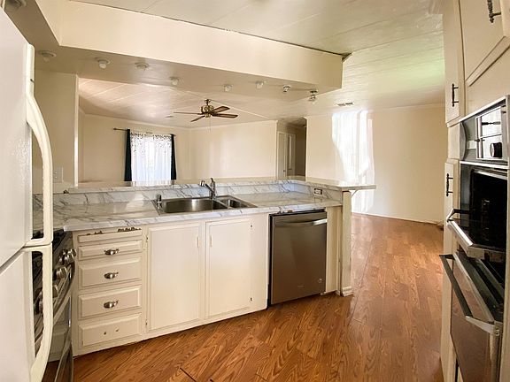 2 bedroom, 2 bath mobile home that has a spacious, fenced yard, quiet park, backs to creek. This is a great opportunity to purchase in a smaller park that is close to shopping, services and the casino. Great floorplan with huge potential.