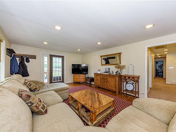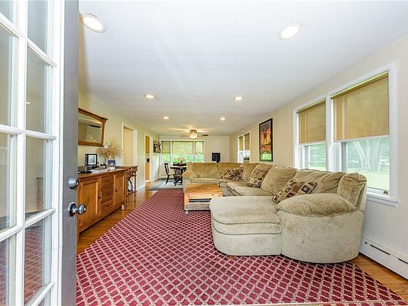 Find the solitude & serenity you've been searching for in this one-of-a kind Home! Situated on ~3+ private, lush acres & offering 1500+sq ft of rustic living, you'll never want to leave! Step inside to find a spacious, light & bright Living/Dining combo, complimented by gleaming HW flooring, rec lights & a fresh neutral palette- easy to make it your own! Sizable EIK feats. soaring skylights, tiled backsplash, plenty of maple cabinetry, counter space & a delightful breakfast bar! Down the hall, find 3 generously sized BRs w/ample closets, inc the Master! You'll also find a Laundry rm & dazzling full bath w/skylight & ceramic stall shower, sure to please! Enjoy effortless outdoor entertaining w/ not one, but TWO decks (front & rear of home), big storage shed & detached 2 car garage w/an abundance of parking space. Sprawling yard & surrounding land offers plenty of shade & peaceful wooded views. Why wait? Come see this countryside beauty for yourself!