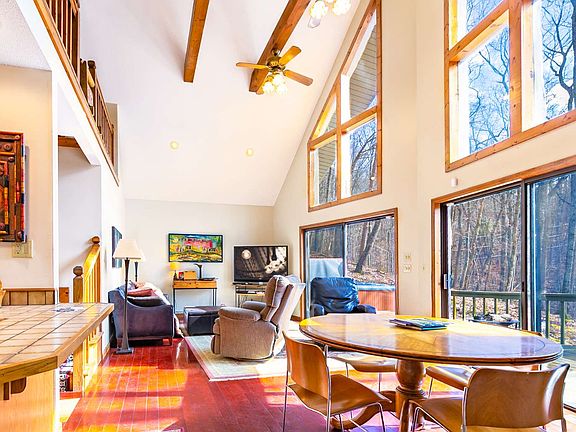 Enjoy Peace & Quiet in this Mountain Getaway located on 15 Unrestricted Acres. This Very Unique Home has Custom Touches Thru ought~ Home Features Open Living/Dining Area with Fireplace and TONS of Natural Light thru the wall of windows, a quaint kitchen that may be small in size but laid out very well with plenty of cabinet space and a charming pass thru window, a Large Entertaining Deck with Hot Tub, and the Main Level also has 2 Bedrooms & 2 Bathrooms, including One of the TWO Master Suites, Master on the Main has with Giant Screened in Porch and Separate Entrance. Upper Level is ALL Master Suite, including private sitting loft area, Large Bedroom & Bathroom. All Bathrooms have been beautifully upgraded! Partially Finished Terrace Level includes Rec Room with Wood Burning Stove, Workshop Space, and several other rooms that can be made into Bedrooms, or used for Storage. The Setting is unparalleled~ we call this home the "Woodland Wonder" Perfectly engulfed in Rolling Mountains, Giant Rocks, Beautiful Hardwoods, Colorful Springtime Woodland Blooms thru ought, and a Branch running thru property! Almost 20 Acres of Unrestricted Land with Multiple Trails running thru the property to Enjoy riding ATVs or Hiking, Hunting, or just to Enjoy the Serenity and Marvel of Nature and Abundance of Wildlife. There is a separate picnic/fire pit/garden area with seasonal mountain views, and Several Outbuildings on the Property. Additional 20 Acres available also.