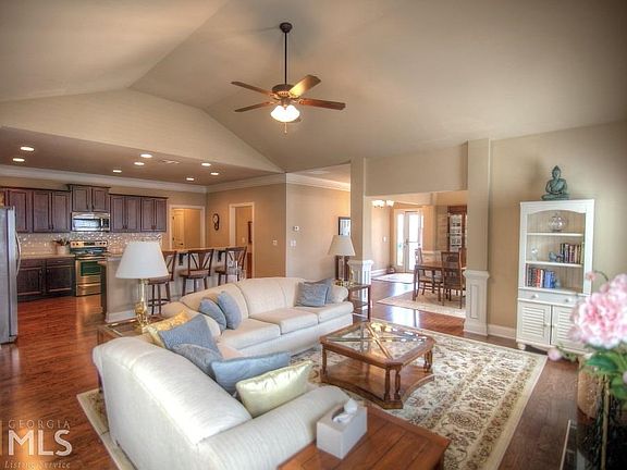 Villas at Winder offers the tranquil setting you seek in this Winder 55 plus neighborhood.The Charlestown floor plan offers the spacious open floor plan you desire.Starting in the entry way to the left find formal dining room that adjoins both greatroom and kitchen.Notice the vaulted ceiling, granite counters,center island breakfast bar,all must haves and more.Also off the entry on of two secondary bedroom.Continue to find the mud room and laundry.Next the hall bath second bedroom and the master suite.Covered patio and private yard.Ask about furnishings and appliances.