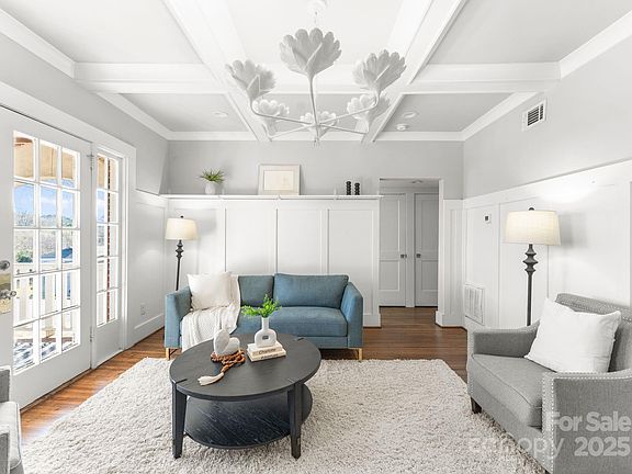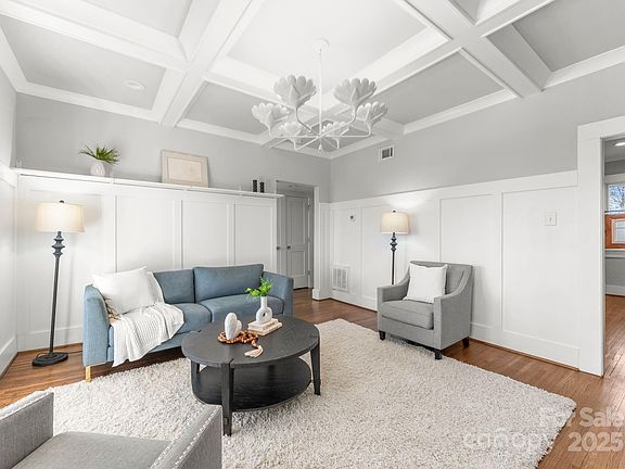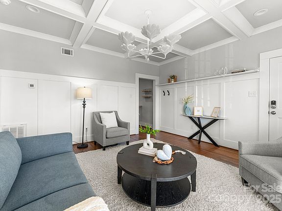 Welcome to this stunning, fully renovated 1-bedroom condo in sought-after Dilworth! Step into luxury with gleaming hardwood floors and custom millwork throughout. The sophisticated living room features a coffered ceiling, abundant natural light, and a private balcony perfect for morning coffee or evening relaxation. The modern kitchen boasts premium stainless appliances, quartz countertops, and custom cabinetry. Located in a prime spot, you're steps from restaurants, coffee shops, grocery, and more. The light rail station is just minutes away, offering easy access to Uptown and South End. Property amenities include secured entry, assigned parking (one space behind the building with back entrance to unit), and well-maintained grounds. Rentals allowed! Don't miss this turnkey opportunity to live in one of Charlotte's most desirable neighborhoods!