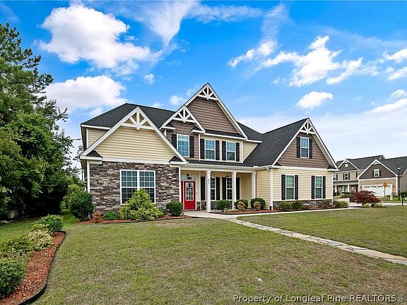 Executive Style 5 bed/3.5 bath home in the highly sought after Liberty Hill of Kings Grant Community, w/in the Pine Forest School District; Upon entering the home, you'll immediately notice the open & airy feel of the home, beautiful LVP flooring throughout the foyer, dining room and great room, incredible custom trim finishes & high ceiling; Formal Dining Room, Office off foyer, Great room w/fireplace, vaulted ceiling, built in speakers, Large Gourmet Kitchen w/Kenmore Elite appliances, Convection oven, 6 burner gas range, wine cooler & plenty of counter space; extra large primary master suite down w/separate vanities, tile surround shower & custom built walk-in closet; Upstairs: 2nd master suite w/vaulted ceiling, two additional bedrooms, full bath and bonus room; home is perfectly situated on a corner lot and professionally landscaped, privacy fenced backyard w/covered back porch, extra patio pad w/awning, storage shed & putting green! Well insulated home - low utility costs