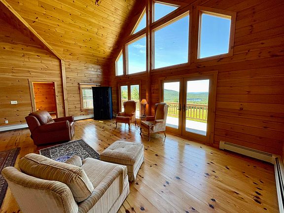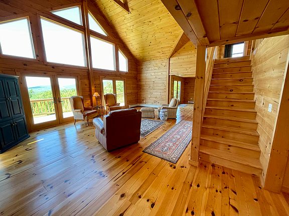 This gorgeous Log home is situated at the height of the land in Warren, NH, overlooking Lake Tarleton, Lake Armington as well as looking out at Mount Moosilauke. Designed from a Linwood model by Coventry Log Homes and custom built in 2006, this is a property that has been meticulously maintained and designed to ensure the valley and lakes are visible from most rooms in the home. The two car garage below allows access to the home as well as the walk-out lower level and recreation space. Two bedrooms are on the main floor including the primary with an en-suite bathroom, and another two are above with space for an office or "play space" between the upstairs bedrooms. The washer and dryer are conveniently located in the closet adjacent to the kitchen. The front porch is a great space for dining while overlooking the gorgeous setting while the back porch provides shade in the warmer weather. A long private-gated driveway ensures security and an existing security system allows you to manage the property from afar. The residential property conveys with an additional 25 acres of land, equaling 52 acres. A one of a kind view paired with a gorgeous log home, well situated for access to both the Plymouth and Dartmouth regions. You can easily commute from this property to I93 or I91. Cell phone service and high speed internet available in the home, this property has all the modern features you're looking for in an upscale home with the privacy that only this unique location offers.