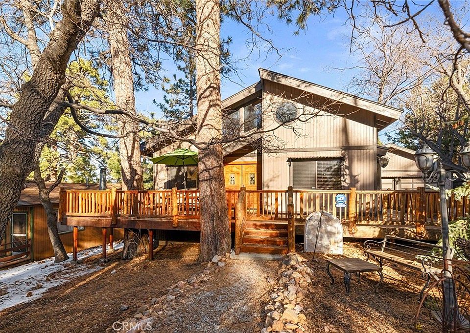 Discover your mountain retreat in this 3-bedroom, 2-bathroom home, boasting 1,894 sq ft of cozy yet spacious living. Nestled on a generous 7,500 sq ft lot, this home offers the ideal blend of comfort and convenience, just steps away from breathtaking National Forest trails. Enjoy an open-concept layout with large stone fireplace that maximizes space and is great for family gatherings or entertaining guests. Three well-appointed bedrooms provide ample space for rest and relaxation, with the master bedroom featuring its own ensuite bathroom for added privacy. There is also a loft that offers so many possibilities. The kitchen is large and with the added counter space is nice for extra dining space. Unwind and rejuvenate in the private spa, creating your own relaxing oasis at home. The wrap around deck provides plenty of space to take in the nature around you. The oversized 2 car garage lends itself to plenty of additional parking and storage. This home does need some updating and modernization and so it is priced accordingly. Such an incredible house and even more incredible deal!