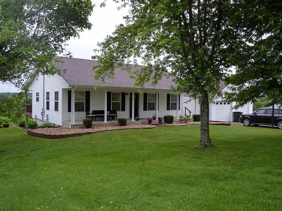 Secluded with a beautiful view & the crooked creek visible from the 3/ 2 1/2 house. No visible neighbors. New roof on house, garage, & shed in summer of 2020. Nest learning thermostat. Stainless steel kitchen appliances. Tree-house in front yard. The garage is set for a generator with cables included. The garage was newly wired in April 2021 for a 220 volt air compressor or welder. Basement carpet was professionally cleaned in March 2021. 2114 Sq.Ft $269,900