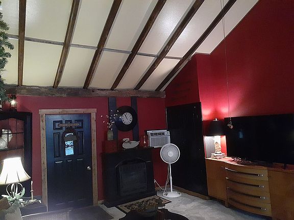 Gorgeous home in North Newark on .47 acres to spare. Enter the home thru the calming foyer that leads to the Rustic kitchen with loads of cabinets, eating space, hardwood floors under the carpet, copper back splash and easy access to the inviting family room with gas fireplace, high ceilings with exposed beams & original wood floor was used on the wall to complete the comfortable, cozy look. The perfect room for entertaining your guest after a wonderful meal! The main level plays host to the master bedroom with seating area & 2nd bedroom is currently being used as a library by seller and can easily be converted back to a closet. Full size bathroom with shower stall & cabinets galore is right across the hall. Walk into the neutral colored living room with natural light & 2nd gas fireplace.
