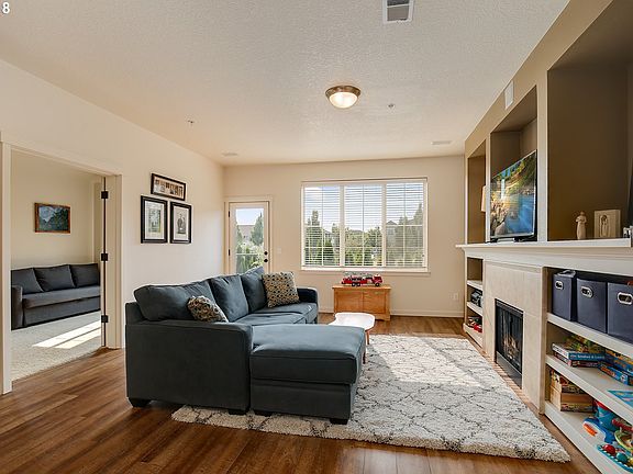 Beautifully maintained townhome-style condo. This lovely home has dual master suites, a spacious main floor den/office and a deck overlooking greenspace. Light & bright open floorplan, living room features built-in & fireplace. Gourmet kitchen with pantry, island & gas appliances. Flexible loft space, central A/C, attached garage & internet included in your HOA. Community pool & gym. Minutes to Max, Streets of Tanasbourne, Intel & Nike!