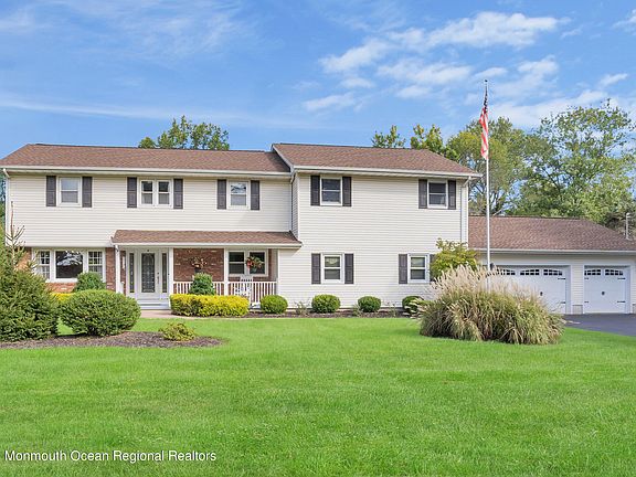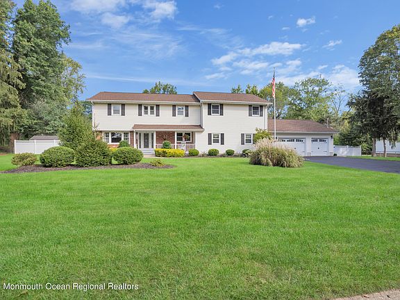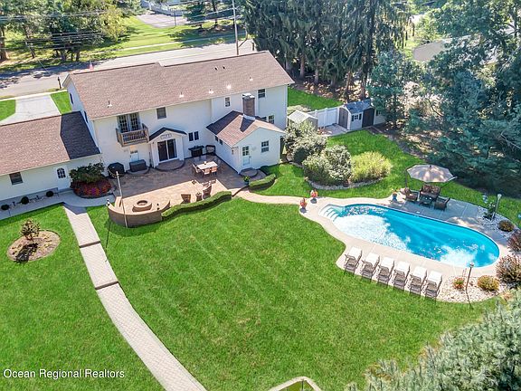 HIDDEN GEM in OAK HILL! Situated on .8 acres In Middletown's desirable Oak Hill section is this lovely, spacious & bright 4/5 BR, 2.5 BA colonial with attached 3 car garage. The expansive 3300+ sq ft interior features a large living room, formal dining room, kitchen with granite countertops & all newer Kitchen-Aid appliances, den with wood burning fireplace & a great room ideal for entertaining. Other highlights include: hardwood floors, newer powder room, large master bedroom suite with multiple closets, beautiful master bath with double sinks & large shower area plus an office area which could be a 5th BR. Enjoy relaxing, entertaining & having fun in an impressive backyard oasis offering privacy in a resort style setting! Features include an in-ground pool, professional putting green, paver patio with built-in firepit, barbecue area and outdoor seating areas surrounded by lovely plants, trees and shrubs. Ideally located close to great schools, shopping, GSP, train & bus to NYC, restaurants and beaches. Take a drone tour of the home & property! http://homes.motioncitymedia.com/843nutswamprd/?mls