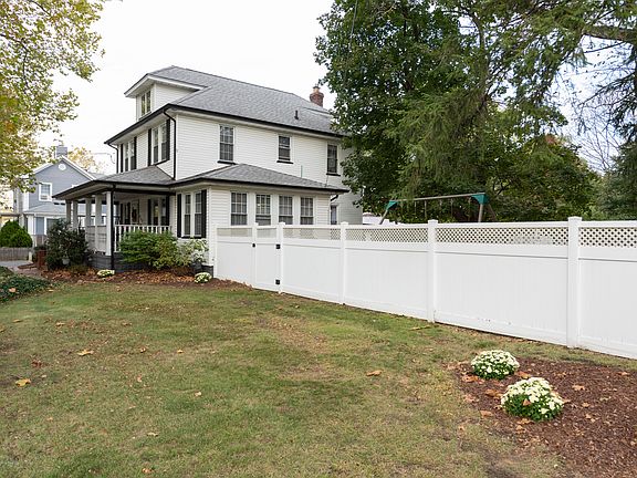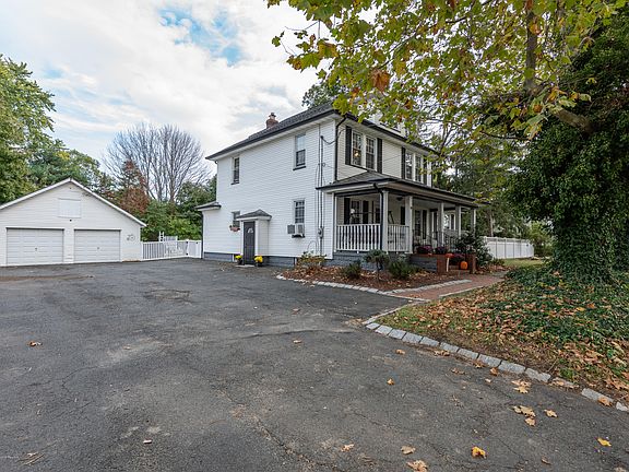 Welcome home to this charming colonial located on a large tree lined property. Inviting rocking chair front porch to enjoy your morning coffee. Main floor includes living room, formal dining room, kitchen with a walk in pantry, and a sun filled office/sitting room with 1/2 bath. Second floor leads you to a large MB with sitting area, 2 generously sized bedrooms and full BR. Bonus space - finished attic that can be used as a playroom/office. Backyard is fully fenced creating a wonderful entertainment space and plenty of room for kids to play. Oversized driveway offers ample parking and direct entry to walk- down basement or into kitchen. Detached garage offers extra storage or work-shop. Please note 2 car detached garage is being sold AS-IS. Located just minutes from train and buses to NY