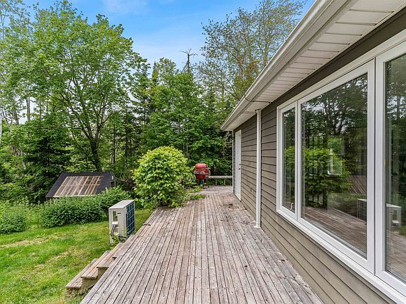 Peaceful Country Oasis just minutes from the beach. Tucked away on nearly 5 acres of lush woodland with the peaceful Trout River winding through your backyard, this beautifully landscaped property offers unparalleled privacy, space, and lifestyle flexibility. This rare gem features two storage sheds and a large detached studio - perfect as a dog kennel with fenced-in run, a charming guest house, a private office, or gym. The opportunities here are endless. Inside, the heart of the home is a newly renovated farmhouse-style kitchen, showcasing Caf Collection appliances, a spacious island with generous storage, and a warm, open-concept layout that is ideal for gathering with family and friends. French doors off the living area lead into a bright and airy sunroom, your year-round sanctuary for morning coffee or evening wind-downs. The sunroom opens into a beautifully appointed primary suite, complete with custom built-in cabinetry and ensuite bath. On the other side of the home, two additional bedrooms offer ample space, large closets, and easy access to a full main bathroom and the attached single-car garage. Step outside and you'll find a large wrap-around deck featuring a hot tub and a pergola ideal for outdoor dining, entertaining, or stargazing under Island skies. A firepit, children's play area, and multiple garden beds round out the outdoor experience. Additional features include radiant in-floor heating, a high-efficiency heat pump, and a cozy wood stove to keep you warm and comfortable all year round. Centrally located just 10 minutes from Cavendish's world-famous beaches, golf, and dining, and within easy reach of Charlottetown (25 minutes), Summerside (22 minutes), and Kensington (10 minutes), this is Island living at its best. Don't miss your chance to own this extraordinary retreat where charm, comfort, and coastal tranquility come together in one unforgettable property. Schedule your showing today.
