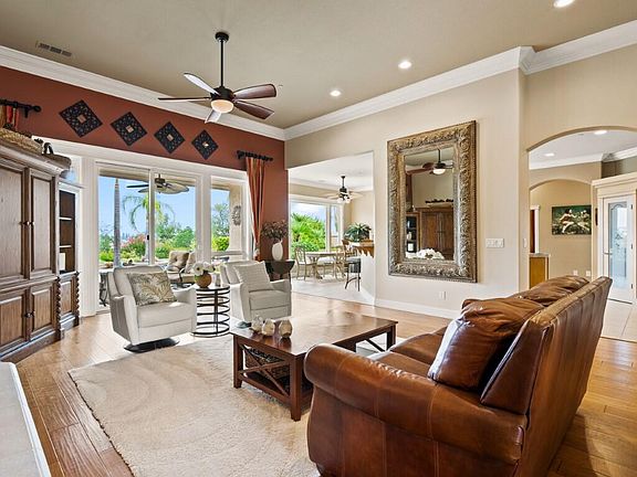 AFTER GATED COMMUNITY!! With stunning curb appeal, Stucco and Stone exterior, tile roof, mature manicured yards invite you in to enjoy the essence of this home. The 3-car oversized side-load garage is entered through the automatic gate for additional security. Custom glass entry door opens to a large Great Room with dramatic ceiling heights with crown molding throughout. Entertainers Gourmet Kitchen includes a large prep island, beautiful granite counter tops, loads of cabinets, breakfast bar, kitchen dining area and spacious pantry. The extensive use of windows throughout the home leaves every room with views to enjoy the landscaped yard and pool area. The in-ground sparkling pool (installed 2009) includes color changes and water features surrounded by Palm trees. Fully fenced gated yard including privacy stucco walls. The lot backs north and captures the views of our Spectacular Mount Shasta and Mountain Ranges, overlooking your private tropical oasis. The gas fireplace creates a wonderful relaxing area for visiting and can be enjoyed from the formal dining area. All yours to enjoy! Come take a look!