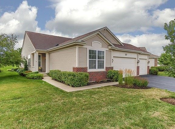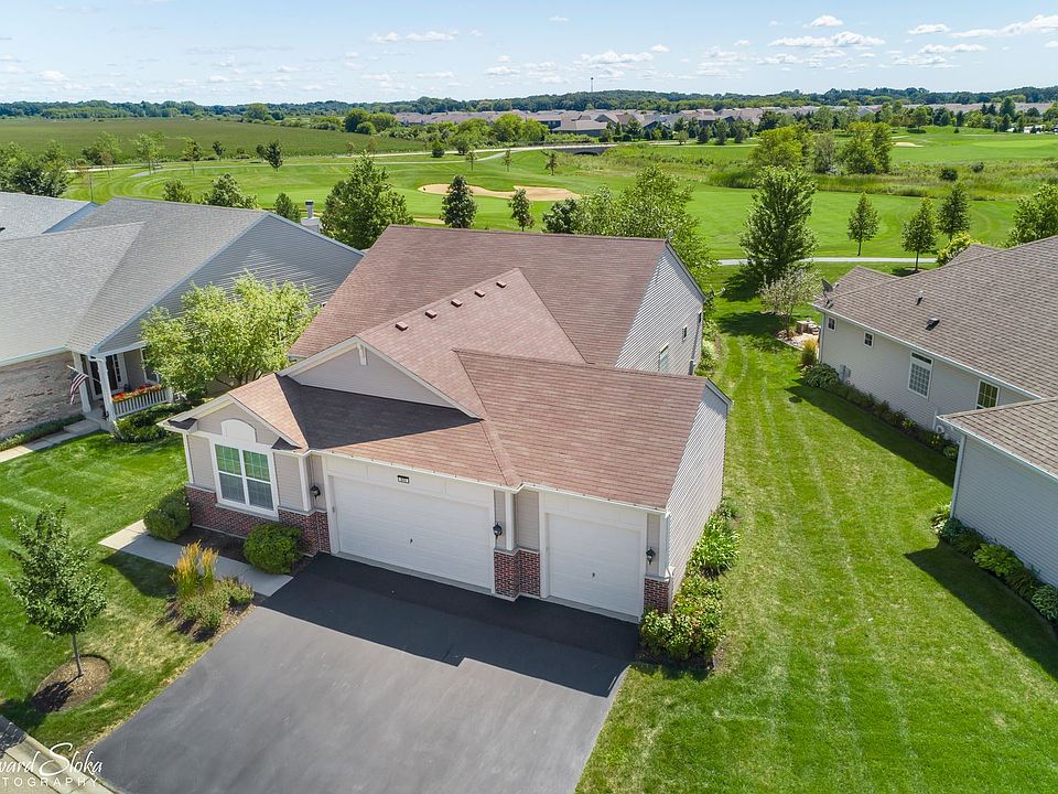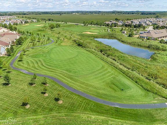 Start with a Premium Golf Course lot, add a 3 car garage and a basement! This one has it all! Energy Star Model features an extended family room for added square footage you'll love, that overlooks beautiful views of Golf Course and is open to eating area and kitchen. Eating area has sliding glass door to patio. Kitchen features oak cabinets and granite counters including a breakfast bar. Master suite features 2 closets and a private bath with dual sinks, soaker tub and standalone shower. Second bedroom has convenient 2nd full bath adjacent to it. Working from home No problem with the great office on main floor. Hardwood and ceramic tile flooring throughout. But wait, there's more! There is an unfinished deep pour basement that has electric completed, vinyl tile floor and all workbenches and tables stay! New water heater 10/20. **Live in Style in this Active Adult 55+ Community that features a Clubhouse, indoor and outdoor pools, Tennis courts, bocci, Fitness center, Billiards room and Free Golf on the 3 hole course. Make sure to check out the drone video!