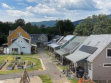 Newly built in 2021, this open and bright three story attached home features a private backyard facing woods. The large back deck provides a creek view and wintertime mountain views. The home has 4 bedrooms, 3 full bathrooms, an open floor plan kitchen/dining room/living room area and another living area in the walk-out basement. There is a large utility room that can be converted into a kitchenette opening to the basement living area with bedroom. The setup is highly versatile, allowing for a variety of living arrangements, including the possibility of a downstairs rental. There are 9' to 10' ceilings throughout the home, hardwood floors, granite countertops, and many large casement windows making this a warm and spacious home — the largest attached unit in Emerson Commons. The Neighborhood: Emerson Commons (www.emersoncommons.org) is a multi-generational cohousing neighborhood. Residents have independent incomes, private lives, and want to live somewhere they know and interact with their neighbors. The community is self-maintained and operated, keeping the community vibrant, connected, and condo fees low. In addition to the neighborly culture and social opportunities, community features include: a swimming pool; a central green space; an organic orchard and raised gardens; creeks and wooded trails; play structures; shared tool and bike sheds; and a Common House (club house) with two guest rooms. Features: 14 south-facing solar panels that can be hooked up for net metering, battery storage or a hybrid system (not included) High-efficiency ducted mini split HVAC system 6" extra-insulated walls with sound barrier Stainless steel appliances (stove, dishwasher, refrigerator) Lovely front porch and a back deck Full bathrooms on every floor Basic stats: Bedrooms: 4 Bathrooms: 3 Square Feet: 2,417 Parking spaces: 2 Condo Fee: $161/mo ?Internet Fee: $60/mo