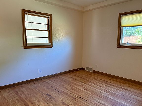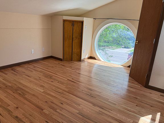 Hip, cool custom 3 bed, 2 bath, 1 car garage PLUS Upper deck! Hardwood floors throughout, vintage (in perfect shape) kitchen cabinets. Vaulted ceilings with mini-split A/C in the living room for comfortable summer living. 2 bedrooms and 1 full bath on the main level. The second floor features a beautiful room with circular window and custom 3/4 bath with laundry. The second story deck allows for some amazing moments enjoying the outdoors perched on top. Fully fenced yard with garden beds. Applicants over 18 must apply credit/background check. Dog ok, tenants responsible for all utilities. 12 month lease