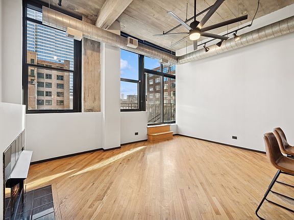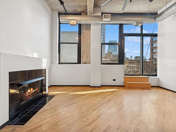 Rarely available West Loop 1 bed, 1bath loft in the famous Olympia Lofts! This sun-drenched condo features 12' concrete ceilings, open concept floor plan, gas burning fireplace, city facing windows and a large trex decking balcony. Newly updated kitchen featuring waterfall island, mini wine fridge, brand new stainless steel whirlpool refrigerator and GE dishwasher. Other home upgrades include reconditioned wood floors throughout, new light fixtures, new ceiling fans, fully serviced HVAC, newer washer/dryer. Down the hall, you'll find a spacious bedroom suitable for a king size bed and additional room for desk or vanity. This tech integrated home includes smart lights, smart dead-bolt with fingerprint code, Ecobee Smart Thermostat, fan regulation and home security all included with Google HomeKit integration. Heated garage parking and storage cage included. Steps to Mary Bartelme and Skinner Park, Whole Foods, Mariano's, Greektown, Randolph & Fulton Restaurants & all the West Loop has to offer!