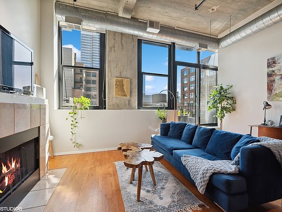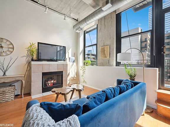 Fantastic value in boutique elevator loft building in the heart of West Loop, welcome to Olympus Lofts! Soaring 12' ceilings with open floor plan and tons of natural light from large windows in living room and city views from private balcony. Smartly-designed kitchen featuring two toned white and gray cabinetry, new hardware, all stainless appliances (2017), granite countertops, and large island with storage. Open living space with cozy gas fireplace and extra space for dining table or desk. Enjoy alfresco living on the private balcony and take in the gorgeous views of the city. The King-size primary bedroom has wall of closets. The 2nd bedroom/den is perfect as a nursery, guest room or an office. Bright bathroom has tub/shower combo and large vanity with plenty of storage. New washer/dryer (2022), Cable and internet included in assessments. Premium heated garage additional $25k. All that West Loop has to offer is at your door including the award-winning Mary Bartelme Park, dog park, Greektown, Randolph Row dining, Fulton Market, Mariano's and Whole Foods, coffee shops, boutiques and so much more. A commuter's dream with a short jaunt into the loop, steps from buses and Blue and Green lines, and a quick hop to the medical/university district or onto the expressway. Fantastic value, space, charm, convenience and location - this is the one you've been waiting for - welcome home!
