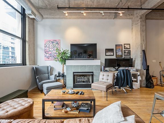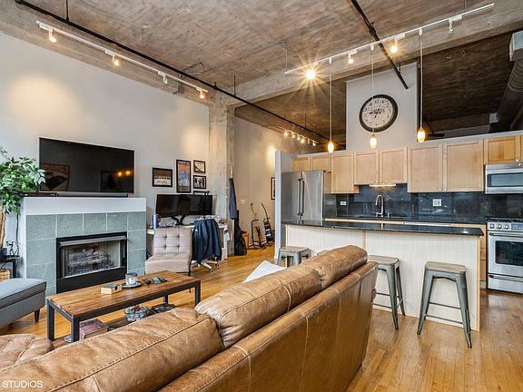 LOCATION LOCATION LOCATION!! This rarely available 1 bedroom, 1 bathroom Olympia loft condominium offers 12' ceilings, central HVAC system, in unit laundry and open concept kitchen with SS appliances, gorgeous granite countertops w/ island seating, upgraded bath, hardwood flooring throughout, beautiful fireplace and private balcony with STUNNING city views!! The lofted bedroom allows natural light to highlight the entire space. Recent upgrades: HVAC, AC, washer, dryer, and dishwasher. Ample closet space and large storage cage on the same floor. The opportunity to experience the best of West Loop urban living in this well priced, loft condo! This location offers convenience and easy access to the best of the West Loop- restaurants, boutiques, rooftop lounges, and easy access to 290, Metra, and CTA Blue line. Mary Bartelme park across the street! Enjoy easy access to street parking options. Welcome Home!!