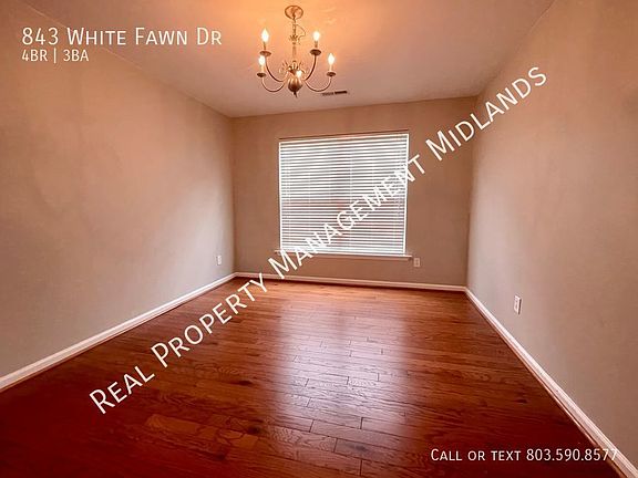 This 2648 square foot single family home has 4 bedrooms and 2.5 bathrooms. This home is located at 843 White Fawn Dr, Hopkins, SC 29061.