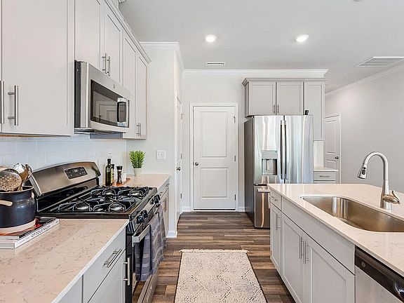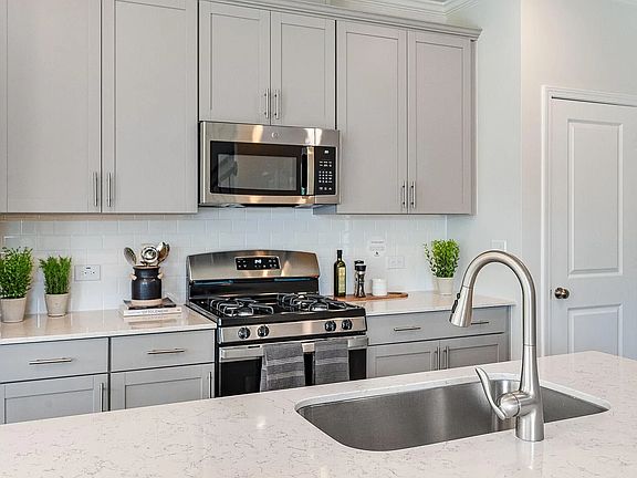 First Floor: An open floor plan with LVP flooring, spacious living and dining areas, a kitchen equipped with GE stainless steel appliances (microwave, gas stove and oven, dishwasher, and refrigerator), a sizable pantry, plenty of counter and cabinet space, and quartz countertops on the central island. You'll also find a powder room, a private backyard, and a one-car garage.