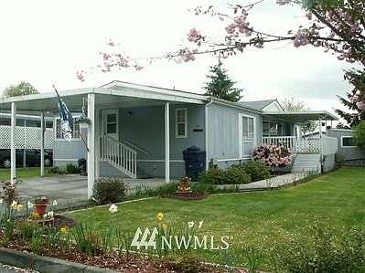 Light & Bright Double Wide in Very Desirable (& Stable)Over 55 Park in Lake Stevens. Small bit of yard, large covered deck & 2 car, side by side carport for convenience of getting in & out. Neutral colors thruout, 3 bedroom and a den/office. Large Kichen with room for a table plus formal dining area. vaulted ceiling in living room, all appliances stay. Master has walk in shower large enough to accomodate a walker or wheel chair. Well maintained. Park has space for RV. Great place to snowbird!