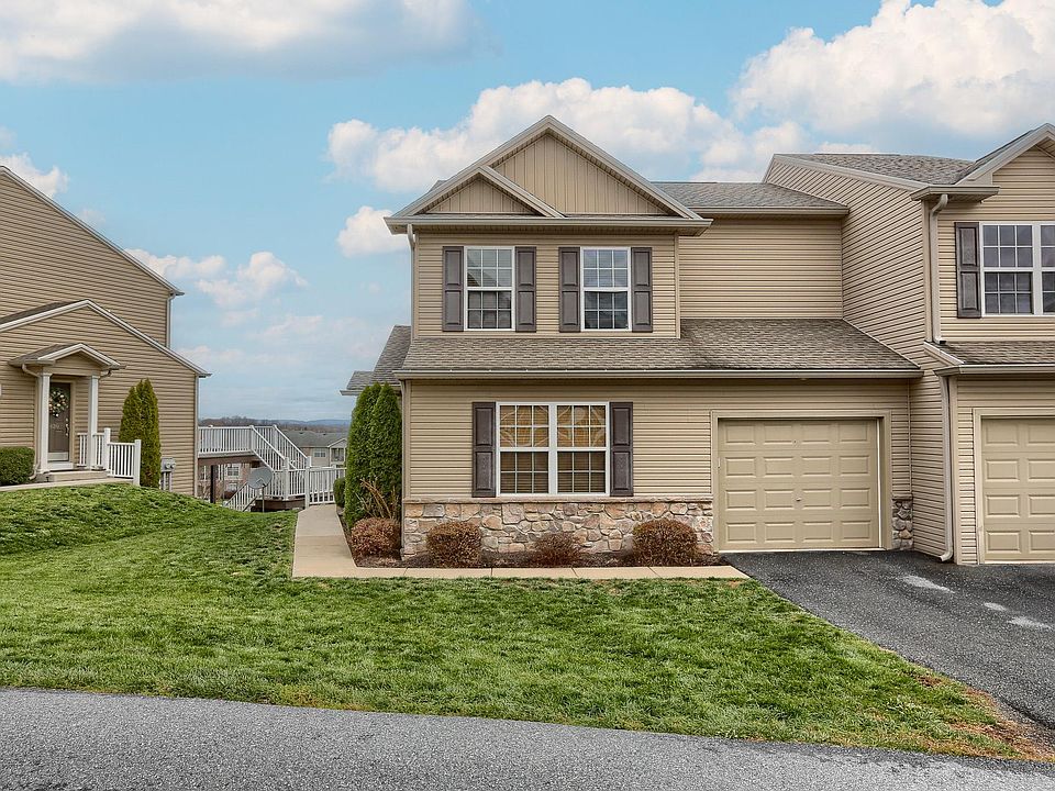 Enjoy this spacious end-unit townhouse with beautiful views of the Hershey/Hummelstown area. Featuring 2 bedrooms and 2 full bathrooms, this home boasts vaulted ceilings, a private balcony, and a versatile loft perfect for a home office, playroom, or relaxation space. The first floor includes a full bedroom and bathroom, an open living and dining area, kitchen, and convenient laundry. Upstairs, find a second bedroom with its own full bathroom and a bright loft. The full walkout basement, though unfinished, offers endless potential for a home gym or storage. Located just minutes from Hershey Medical Center, Harrisburg, and major routes (322/283/83), this home combines convenience and comfort. This property is available for a one-year lease starting on July 1st, 2025.