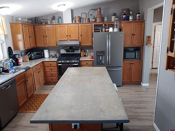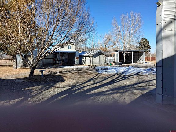 Great property on one acre with irrigation water in Olathe Colorado. Beautiful views surrounding this stucco manufactured home with a 30x30 drive through shop and plenty of outbuildings. Enjoy the many trees including pecan, peach, cherry and plum as well as the grape and berry trellis and arbor. There is also a picnic pavilion with a long picnic table and fire pit for those for those outdoor celebrations. Inside there is a tongue and groove vaulted ceiling in the living area with gas fireplace, formal dining room and split floor plan. The kitchen has newer GE appliances including a gas range and a beautiful wood top island. Extra insulation has been added under the home and in the attic. There are wonderful views from many points in the yard including from the large covered front porch. The irrigation pump is only a year old and the water heater and furnace are newer as well. More to see when you come visit this lovely home.