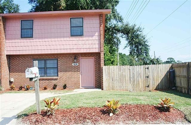 Beautifully updated Town Home conveniently located only .4 miles to I 10. Just 16 minutes to downtown Pensacola and 23 minutes to Milton, Fl via the interstate. This townhouse features is private driveway and a side entrance into the backyard through the extra wide gates of the privacy fence. It also has newly updated tile floors throughout and new carpet in all of the bedrooms. The kitchen has granite countertops and a huge granite kitchen island the features updated pendant lights. Other kitchen features include under mount cabinet lighting, recessed lighting, new appliances, a clean and crisp looking backsplash and updated cabinets and pantry. The eat in dining area is spacious enough for a nice kitchen table and also has a powder room off to the side. The custom wood staircase leads to 4 bedrooms and the other 2 updated bathrooms with the Master hosting its own on-suite. Fresh paint on the outside and new textured walls throughout the house only adds to the fresh and new feel of this updated townhouse. The townhouse also has a brand new A/C unit, new back sliding glass door and a separate utility room on the covered patio. The privacy fence encloses the spacious yard on this one of a kind end unit.