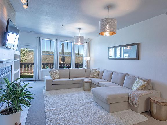 Great Mountain Views! 6-12 MONTH rental of this meticulously maintained contemporary condo. Available furnished and move-in-ready starting October 1. This 1,300 sq ft, top-floor, 2-bedroom condo features breathtaking mountain views with a sprawling living room and gas fireplace. Master bedroom suite features a king size bed, walk-in closet, double vanities, and large jetted tub. Natural light pours into this corner unit with fully equipped kitchen and ensuite laundry. Contemporary dining room can be converted into an executive home workspace as well. Large outdoor deck provides panoramic mountain views for entertaining and relaxing. Close to ALL SKI RESORTS. Instant access to 1-80 and 15 minutes to Park City, Canyons, and Deer Valley. 20 minutes to Salt Lake City. Catch the FREE bus across the street and/or park your car in the heated garage with assigned parking and private storage for outdoor equipment. You're minutes away from Olympic Park (home of ski jumping and bobsledding) and Historic Downtown Park City, and 5 minutes to the Kimball Junction area, as well as shopping, dining, grocery, coffee shops, and local conveniences. Plus, you're 5 minutes away from the brand new Woodward Park City, a 66,000-square-foot, world-class facility including foam pits, trampolines, skiing, snowboarding, halfpipe, terrain parks and more. Basic cable and internet included. Tenant pays other utilities