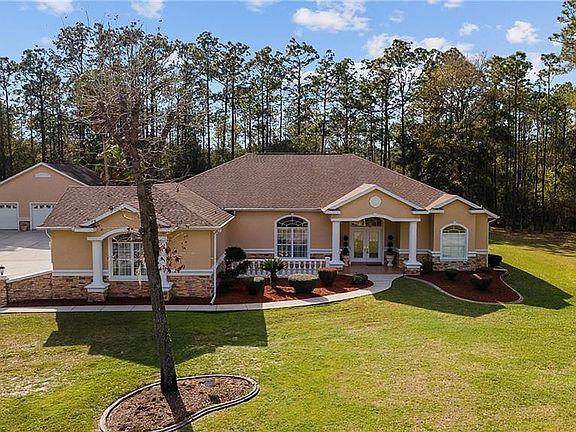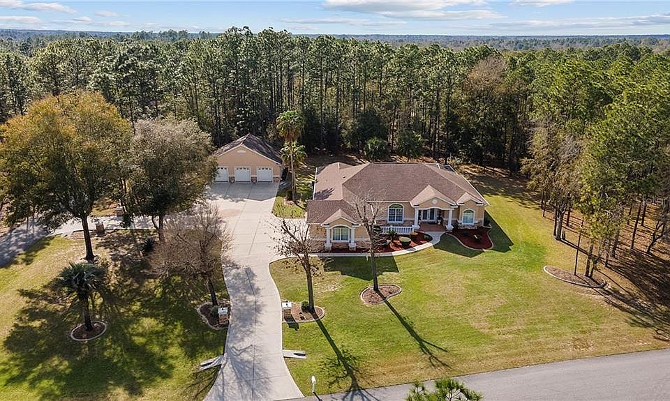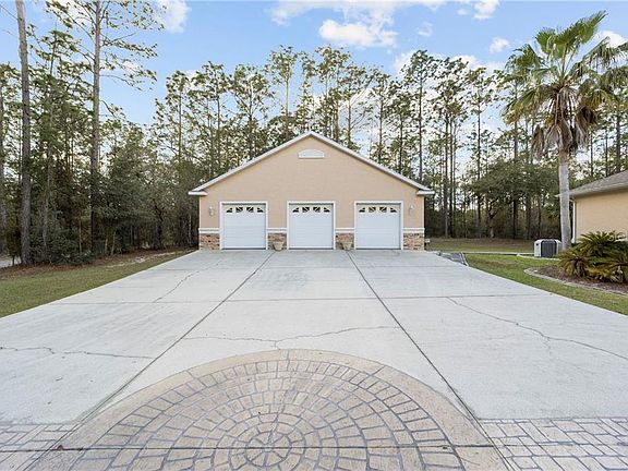Live your dream in this stunning Rainbow Springs executive home sitting on lush private landscaping of 1.51 acres. For the car enthusiast, this home offers a 6-car garage at minimum, 3-car attached to the home and a separate detached 3-bay garage with a half bath for all your needs. Circular drive with curb appeal galore. The home features a split bedroom plan with a formal living room & large formal dining room. A chef's kitchen with tons of cabinetry open to the family room. Sliding doors open to an oversized pool including a sitting area in the lanai to enjoy the sounds of the birds. Inquire on the additional lot for sale separately. Don't miss the opportunity to live in Rainbow Springs. Swim and kayak in the crystal-clear waters of the Rainbow River & Springs. World-class in-shore fishing in nearby Crystal River. Redfish, snook, trout & tarpon. Miles & miles of paved bikeways closeby.