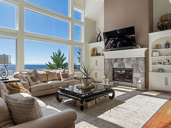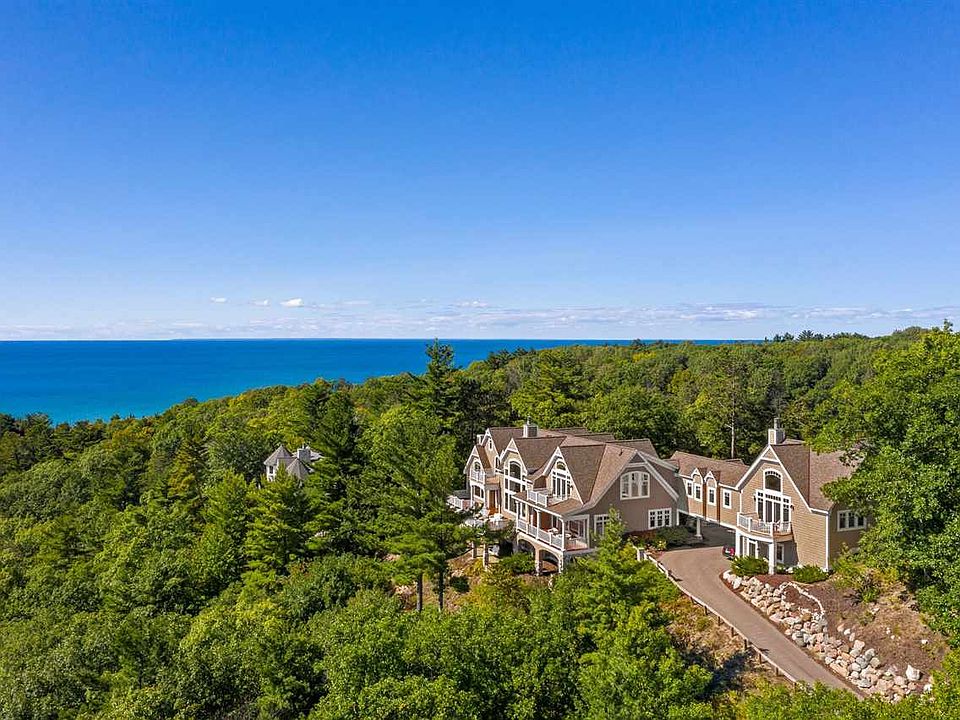 Ultra private, estate sized home with unparalleled views of Lake Michigan from every room. Private sandy Lk. Michigan beach with two separate shared access sites. This top of the hill house has private balconies in most of the 5 bedrooms and in the amazing guest house. Total privacy with almost 8,000 sq. ft of custom crafted hill-top elegance. Custom cabinetry, wood floors, granite throughout with every attention to detail when created in 2005 and updated since. Impossible to recreate anywhere near this price in today's market. Swedish sauna room, hot tub, workout facility, home theater, bar. A true compound for your entire family and friends to gather. Stroll down the hill from the exclusive lower shore region, and you are a short distance to Harbor Springs with its upscale restaurant scene and waterfront lifestyle. Truly one of Northern Michigans finest gems. Seen by appointment with 24 hour notice. Qualified buyers only.