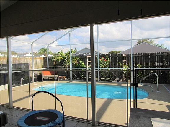 Well maintained 3 bedroom, 2 bath, 2 car garage home with custom garage screening for privacy and mosquito protection and new garage door 2014. Private tiled lanai with two large outdoor ceiling fans leading you to the newly installed (2/2019) In-ground pool with large birdcage. There is a free standing hot tub that conveys. Yard has privacy fence with a dog run on one side of the home. There is open space behind the fenced in backyard that lends to additional space from your neighbors. Kitchen was remodeled 2016. New appliances in the kitchen 2016. Seamless gutters 2015. Additional seamless gutters installed new 2/2020 by the front door. Sprinkler system 2019. New Roof 2014. AC 2006 with all new duct work 2019. Ceramic 7" wood look tile throughout home. The only two rooms that have carpet are the two secondary bedrooms. Too many upgrades to list. This home is a must see! Pride of home ownership shows throughout this gem! This neighborhood has a low HOA fee of $37 per month that includes a clubhouse for larger gatherings, large community pool. For an additional $20 per month you have access to store your boat or RV. All of this is directly across the street from the subdivision. You will not be disappointed with this one!!