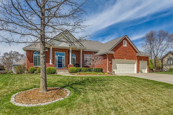 Beautiful home on lake lot! Open and nicely flowing floorplan features lots of wood floors, formal dining, granite kitchen with oversized island and newer appliances (double oven!) that is open to a large family/hearth room. Main floor includes 2 spacious bedrooms, a full bath, plus a wonderful master suite with updated master bath and gorgeous tiled shower. The main floor laundry is conveniently located near the bedrooms. Main floor also includes a convenient "drop zone" inside the garage entrance. A stunning curved staircase leads to the large, true walk out basement that holds a large family room, 2nd fireplace, bonus/game room, wet bar, 2 bedrooms, full bath and concrete safe room. The exterior is nearly all brick, with siding accents on back and soffits constructed in vinyl, making for a very low maintenance exterior, along with the tile roof. You can enjoy the view of the fountains and lake from the deck off the kitchen or from the patio on the lower level. This home features a whole house sound system that also includes the deck! A sprinkler system and irrigation well keep the yard lush and green. This is a fantastic home -- both mechanically and cosmetically, and is ready to move right in! Great location near shopping, easy highway access, and Maize school district!
