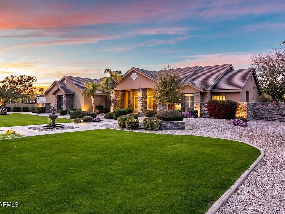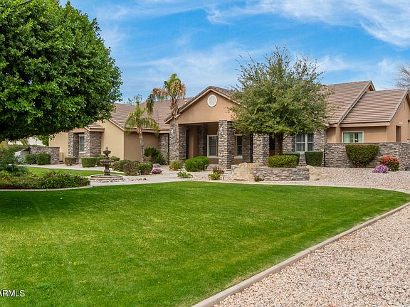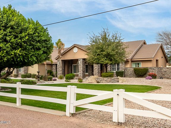 BEST VALUE in PEORIA! What a FIND in today's market, a beautiful custom built home on a county island makes this such a RARE opportunity! CAR LOVERS DREAM! Perfect car storage, room for car lift, ready to go! This home has everything you could want and has been built with rare quality. Forget those wood frame this home was constructed entirely of concrete giving you incredible insulation during the summer heat and structural safety. New interior flooring, paint. Over 1 acre lot is a entertainers dream including resort style pool and hot tub, outdoor entertainment, sun shades, patio heaters, and lighting, all that can be controlled at the touch of a smart phone or tablet. Also features children's playground, basketball court, dog run, large lawn area, car lift, and the ultimate man cave! So many more things to enjoy from soaring ceilings, designer kitchen, open floorpan, custom upgraded tile/flooring, RV parking, Horses allowed, call us to get the scoop and find out everything this home has to offer!