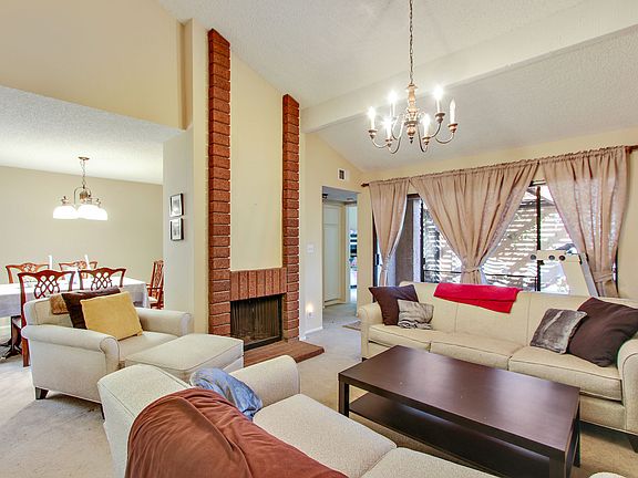 Amazing single story in the Silver Creek Town homes. This home features 2 bedrooms + Den/3rd Bed and 2 baths almost 1500 sf. Unit features open floor plan, brick-lined fireplace in family room, dining area. Sliding doors from the kitchen and family rooms open to the patio. Master bedroom with it's own bath and walk-in closet. Two car garage with direct access entry. Great location within steps of the tennis courts and pool. Wonderful well maintained complex.