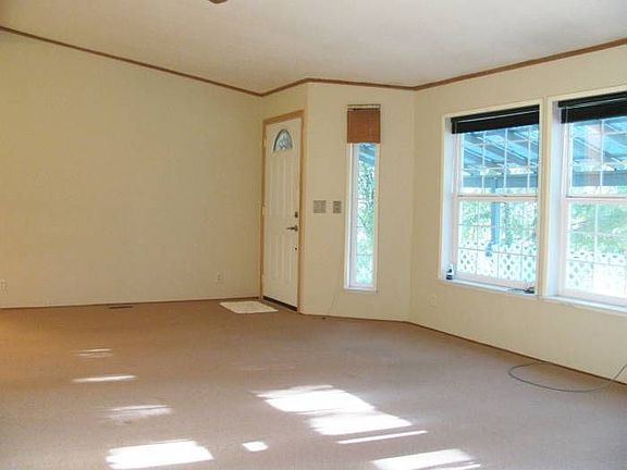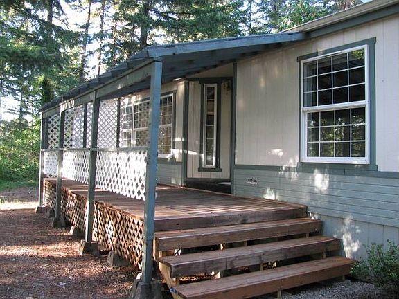 This 3 bedroom, 2 bath, 1680 sq ft manufactured home has a SECLUDED, wooded setting. Open floor plan with vaulted ceilings throughout. The large kitchen has a pantry, breakfast bar, and lots of cabinet space.All appliances are included. Each bedroom has a walk-in closet. The master bathroom features double sinks, garden tub & a separate shower. With a few trees trimmed, this home could have a spectacular sunset view. The land is sloped, but has level areas. Located only 20 minutes to Eugene.