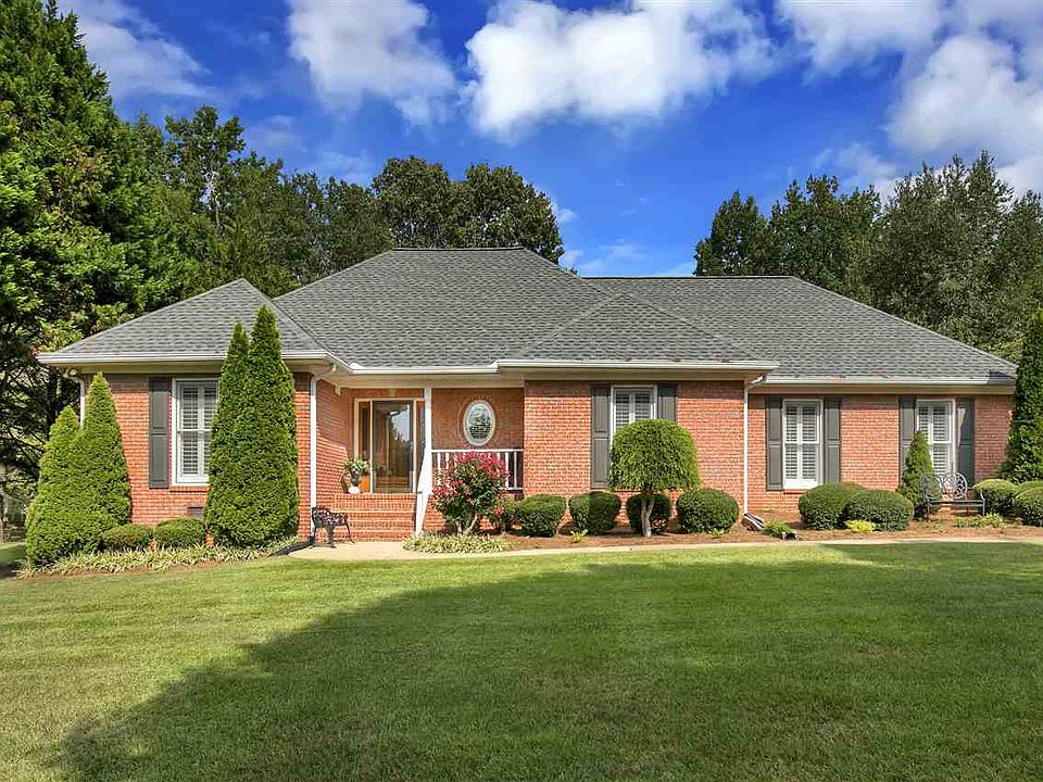 You'll love this beautiful one owner home in Emerald Valley. Just one block from the clubhouse, pool and lake. One level living with 3 (split bedrooms), large master bath and walk-in closet, leaded glass front door, hardwood and tile floors, crown molding. plantation shutters, jetted tub, updated eat-in kitchen, formal dining room, gas log fireplace, large covered deck, 12x16 storage building, manicured lawn, full brick exterior with vinyl trim, dimensional shingle roof (2012).