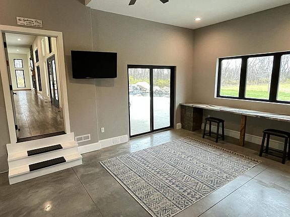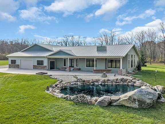 Discover the epitome of refined country living in this stunning estate, with 2x6 construction and perfectly set back off the road. Thoughtfully designed to harmonize modern sophistication with natural beauty, offering a sanctuary that is both inspiring and serene. The open-concept interior features 12-ft ceilings and modern finishes showcasing comfort and craftsmanship with a spacious finished downstairs. Two impressive attached outbuildings offer exceptional versatility with 14-ft ceilings, 12-ft doors and a heated shop area. Waterfall pond, winding ATV and walking trails, and breathtaking views in every direction. Whether entertaining guests, pursuing passions, or unwinding in complete solitude, this remarkable property delivers luxury, comfort, and freedom without compromise.