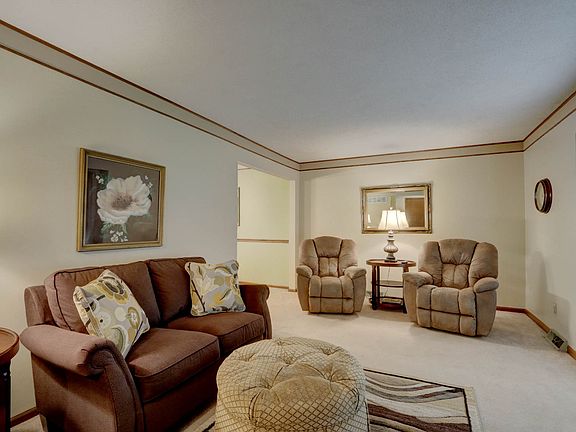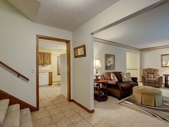 Dazzling 4 bed, 2 bath side to side split will take your breath away. Maintenance free vinyl siding trimmed with brick are topped off with immaculate landscaping and artsy front railing. Step onto crisp tile floors throughout foyer and eat in kitchen. Host a gathering in your formal dining room and living room with floor to ceiling windows. Be at ease in your master en suite with shwr. 2nd, 3rd, 4th bed, and guest bath offer plenty of space for any family. Cuddle up next to the fireplace in the cozy walkout bsmnt.
